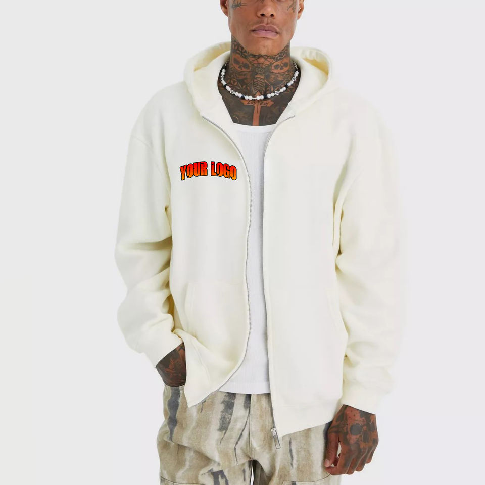 Movatextiles เสื้อฮู้ดมีซิปเต็มตัวสำหรับผู้ชาย, ผ้าฝ้าย100% น้ำหนักมากเสื้อมีฮู้ดโอเวอร์ไซส์พิมพ์ลายแบบกำหนดเอง