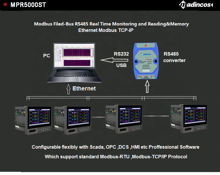 MPR5000ST: เครื่องบันทึกแผนภูมิความดันและอุณหภูมิแบบไร้กระดาษ8/18/32ช่องดิจิตอลแบบสากลสำหรับอุตสาหกรรมพร้อมระบบ totolizer เลข/การไหล