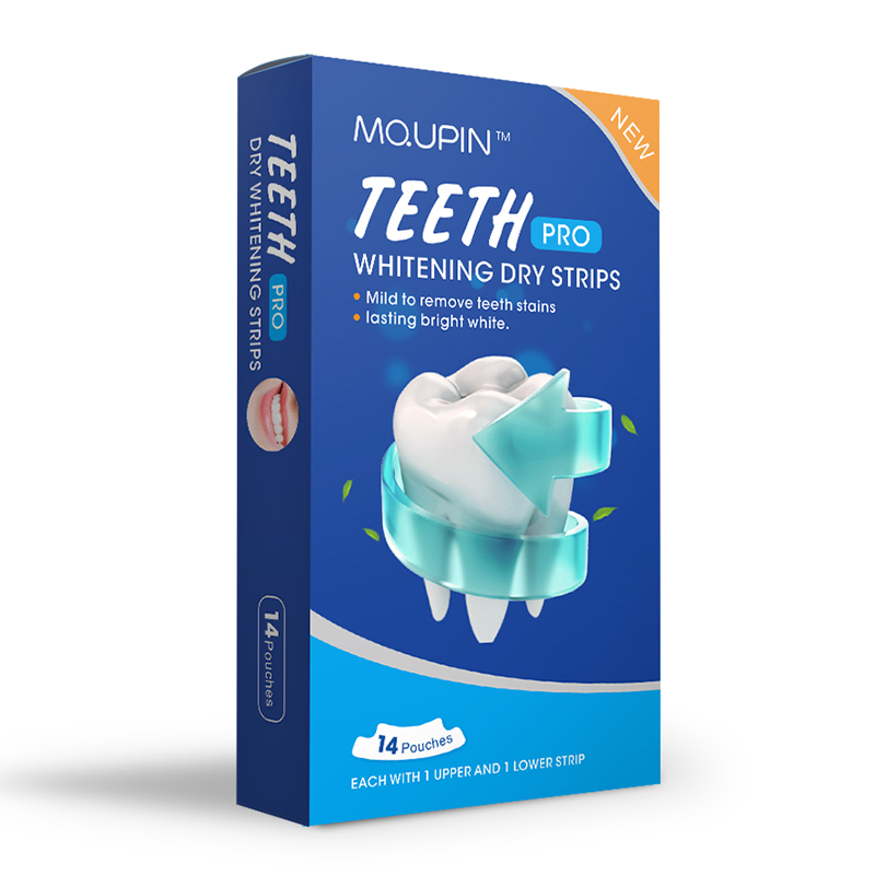 แผ่นฟอกสีฟันแห้ง MQ สูตรน้ำสีฟ้า 14 ซอง/กล่อง อ่อนโยน ขจัดคราบ ฟันขาวกระจ่างใสยาวนาน ฟอกสีฟันเร็ว พกพาสะดวก