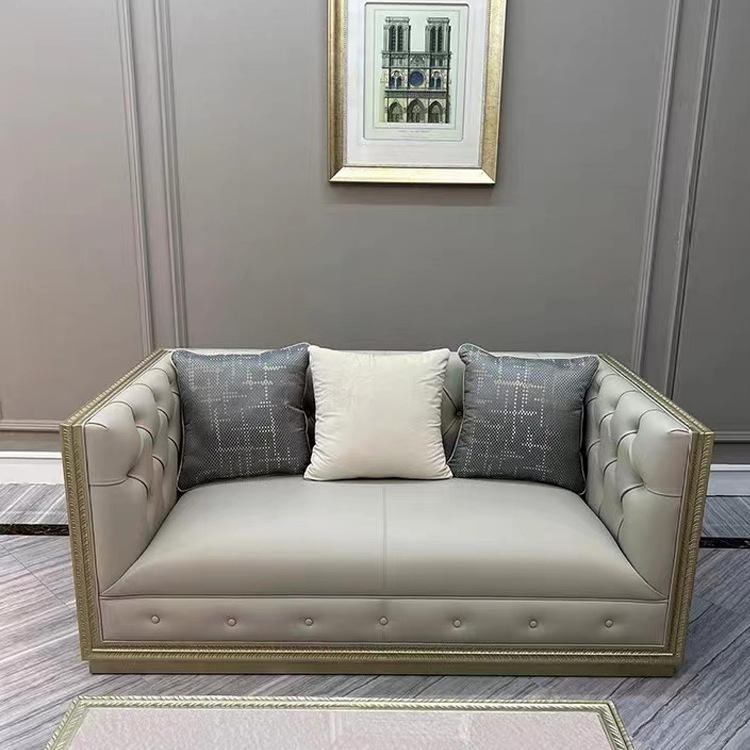 ชุดโซฟาไม้จริงสไตล์อเมริกันเฟอร์นิเจอร์ห้องนั่งเล่นชุดโซฟาหนังแกะสลักโซฟาโซฟาไม้