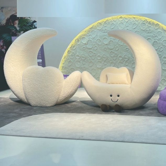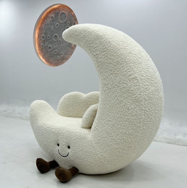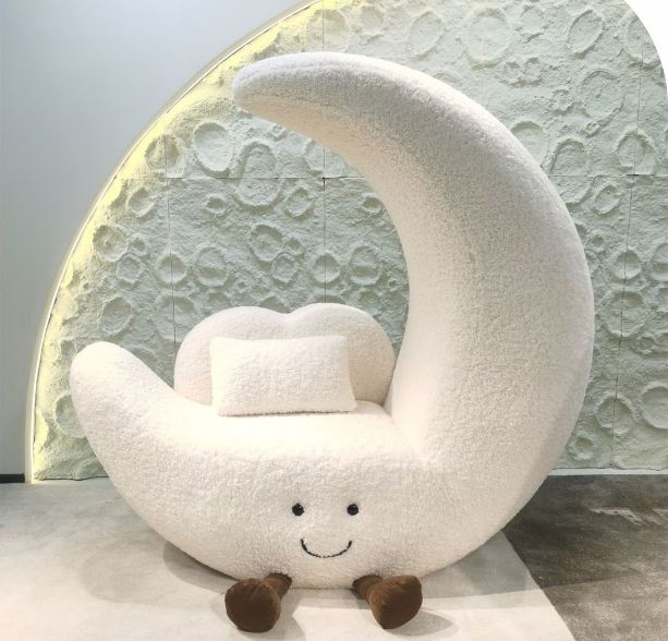 เก้าอี้โซฟาทรงพระจันทร์สไตล์ครีม MR สำหรับห้องนั่งเล่น ระเบียง ดีไซน์เรียบง่ายทันสมัย เก้าอี้พักผ่อนเดี่ยว