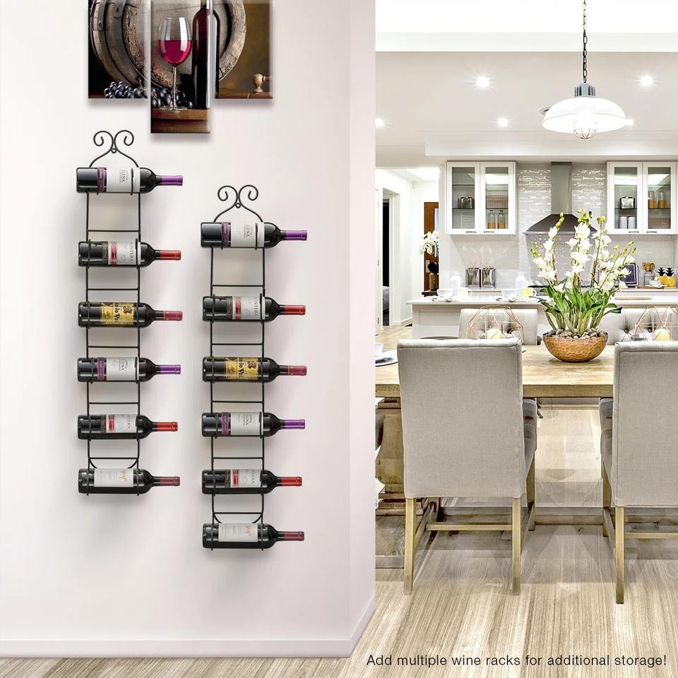 ชั้นวางไวน์แบบติดผนัง 6 ชั้น รุ่นคลาสสิค จาก MR HANDICRAFT ทำจากลวดเหล็ก ความจุ 3 ลิตร ป้องกันสนิม สีดำ