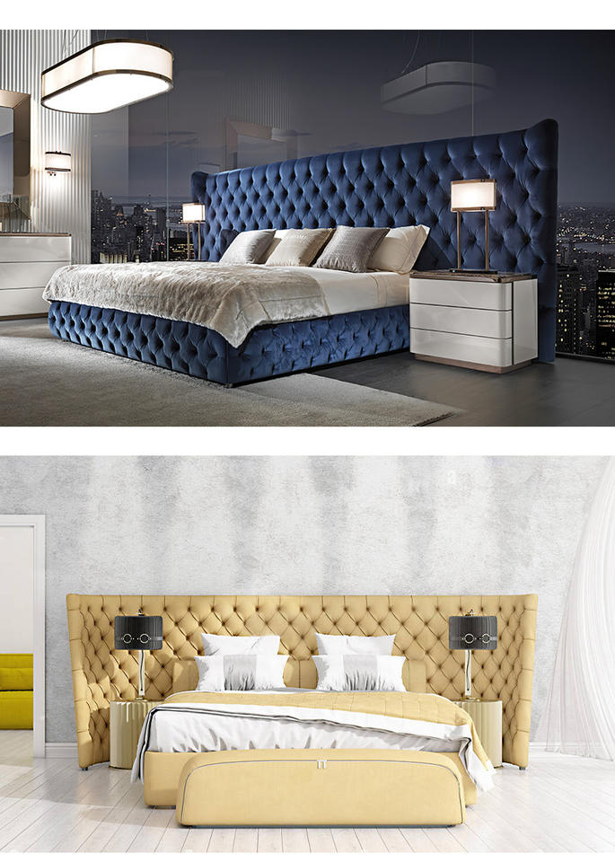 เตียงไม้แบบจอกว้างหัวเข็มขัดหนังแท้หรูหรา MR ห้องนอนใหญ่โครงเตียงคู่สำหรับเฟอร์นิเจอร์บ้านโรงแรม