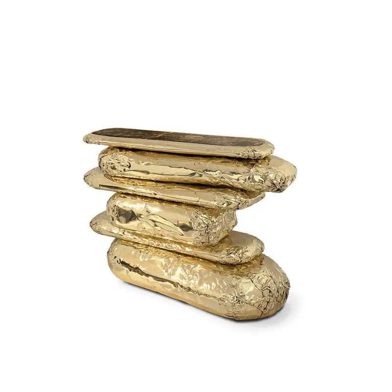 โต๊ะหมุนสแตนเลสสตีลชุบโลหะแบบโบราณทำจากเหล็กทุบโต๊ะทางเข้าห้องนั่งเล่นหรูหราแบบคลาสสิกสีทอง
