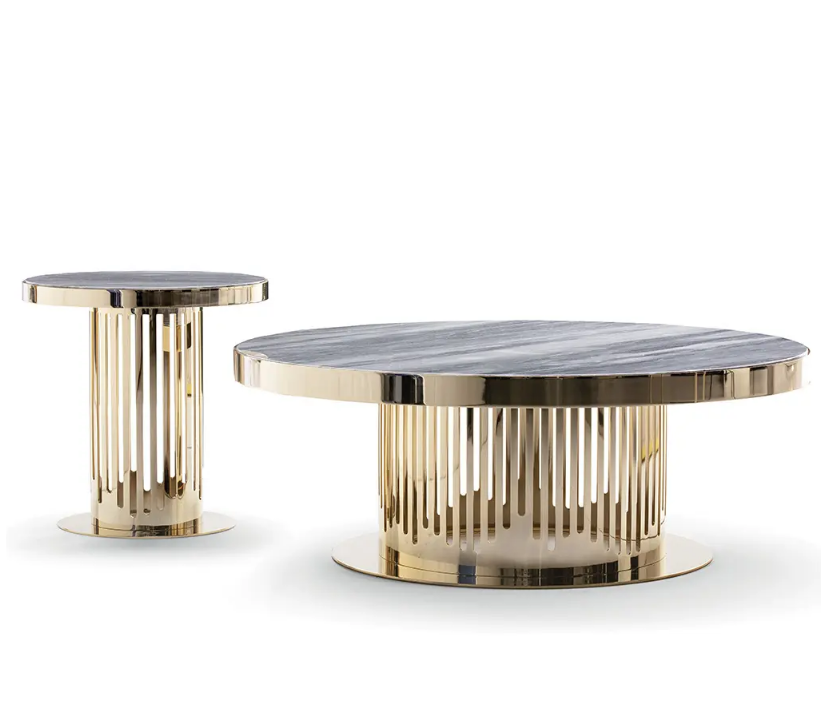 MR ชุดโต๊ะกาแฟในห้องนั่งเล่นแบบทันสมัยทำจากสแตนเลสโต๊ะแบบเน้นเสียงรอบโต๊ะวิลล่าโต๊ะกระจกโต๊ะข้างไม่เหมือนใคร