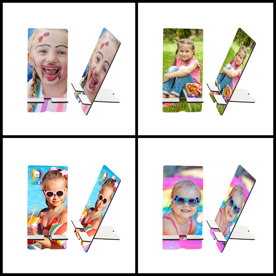 M R.R ที่วางโทรศัพท์มือถือแบบระเหิดที่ตั้งโทรศัพท์แบบตั้งโต๊ะ MDF ขาตั้งแท็บเล็ตสมาร์ทโฟนงานฝีมือแบบพกพา DIY