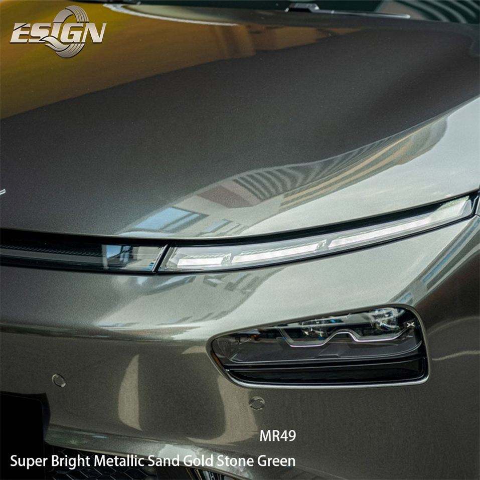 MR49ไวนิลเคลือบทรายสีทองสีเขียวสำหรับห่อรถด้วยตนเองสีป้องกันรอยขีดข่วนโลหะสีทองสดใสเป็นพิเศษ