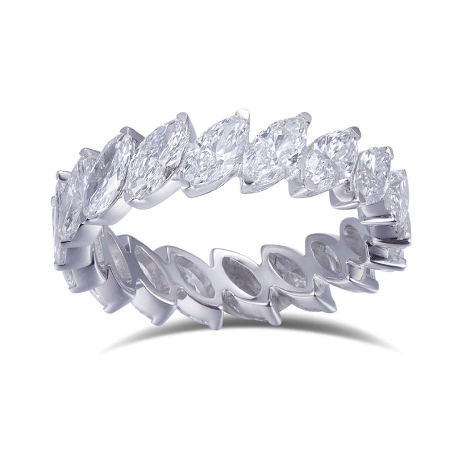 แหวนเพชรทรงมาร์ควิส HPHT สไตล์เฉพาะตัว ทองคำขาว 18k รุ่น MS-623 แบบเต็มวง