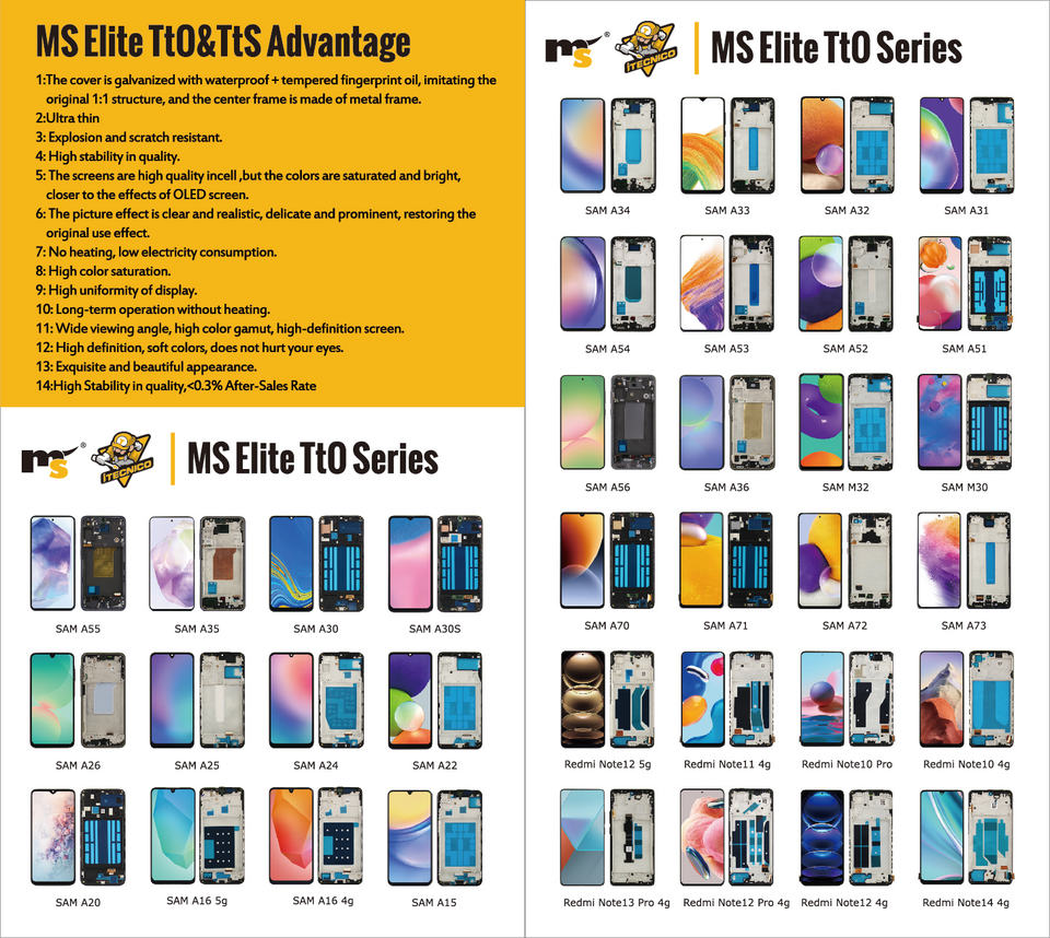 MS Elite tto Series หน้าจอสัมผัส LCD โทรศัพท์มือถือแบรนด์ที่แตกต่างกันการแสดงผลบนหน้าจอคอมโบ