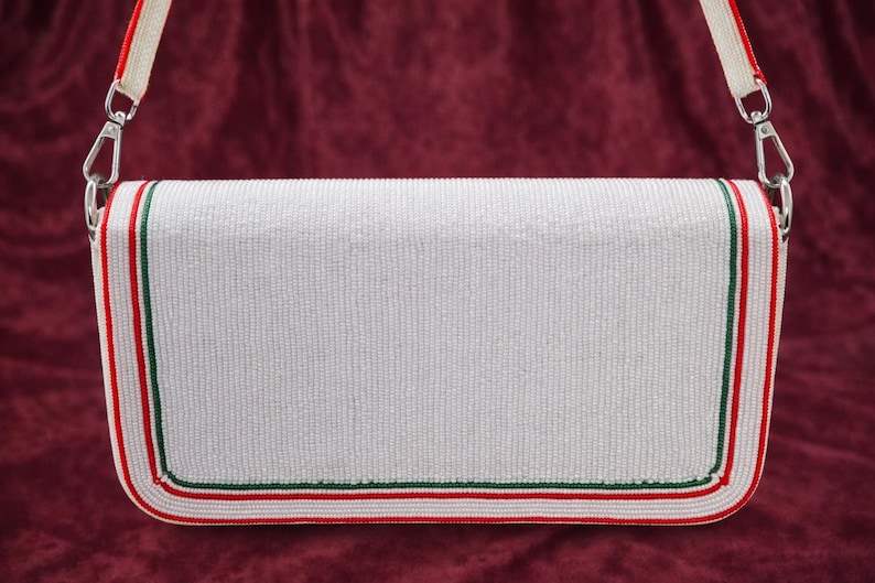 กระเป๋าถือแฮนด์เมดจากอินเดีย รุ่นบาแกตต์ ประดับลูกปัดแก้วหลากสี ได้รับการรับรองจาก MS Handicraft รูปทรงสั่งทำพิเศษ