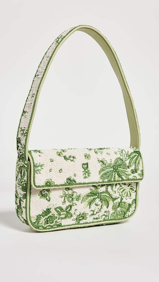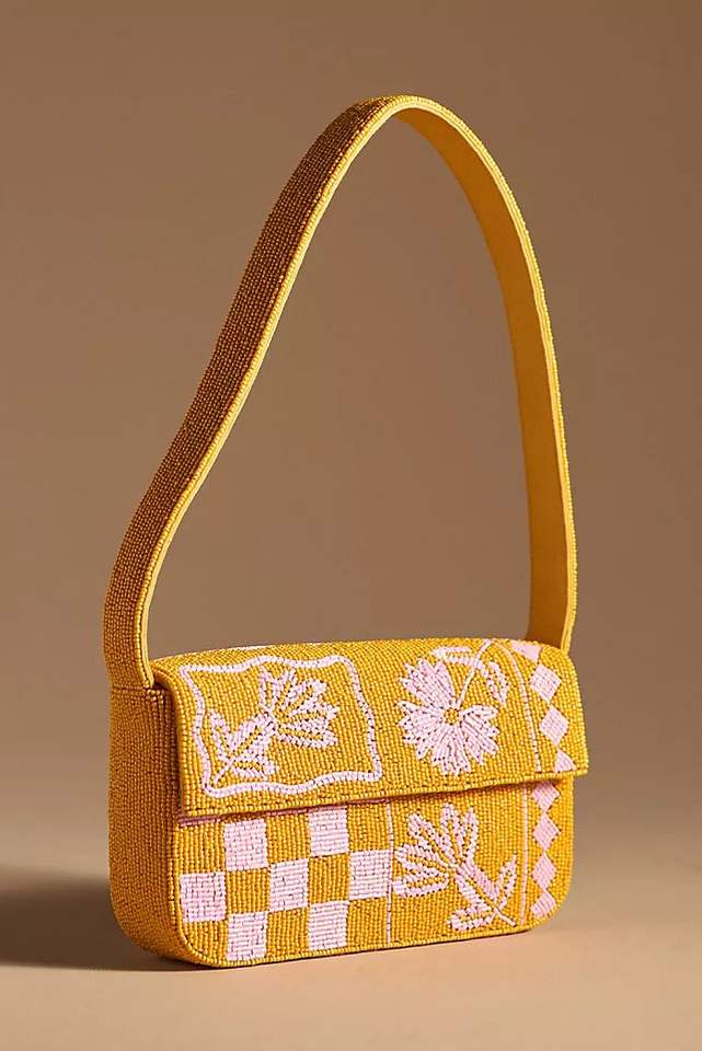 MS กระเป๋าคลัทช์ลูกปัดแก้วลายดอกไม้เขตร้อนได้รับการรับรองรูปทรงและสีของแม็กซิกันพร้อมโซ่คาดลำตัว