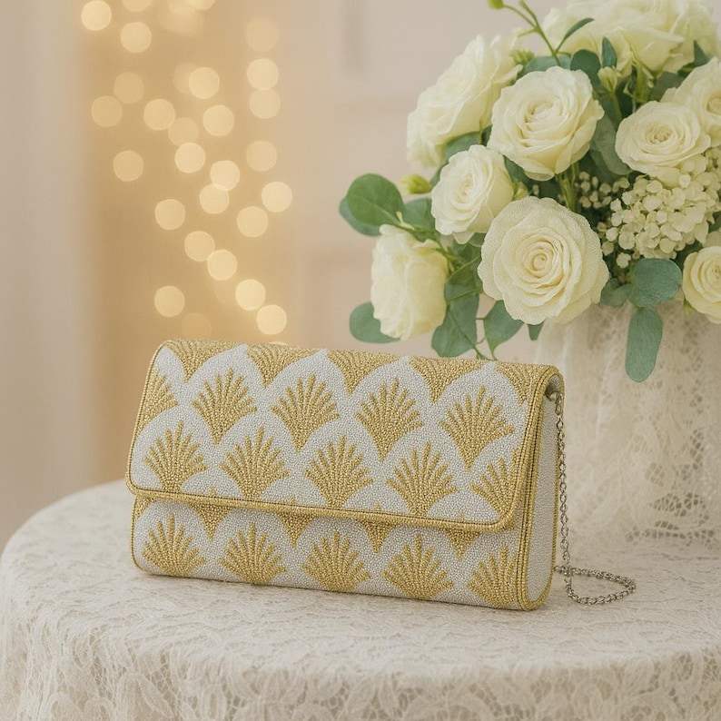 กระเป๋าคลัทช์ลูกปัดแก้วลายดอกไม้เขตร้อนรับรองโดย MS Handicraft รูปทรงและสีสันปรับแต่งได้ กระเป๋าสะพายข้างสไตล์เม็กซิกันสำหรับงานเทศกาล พร้อมสายโซ่