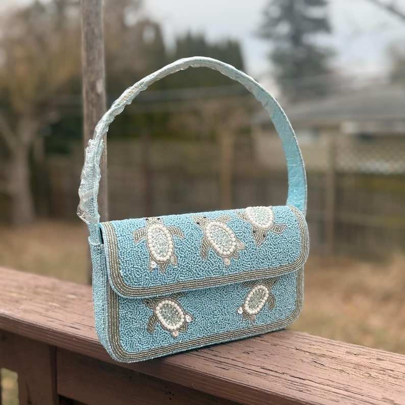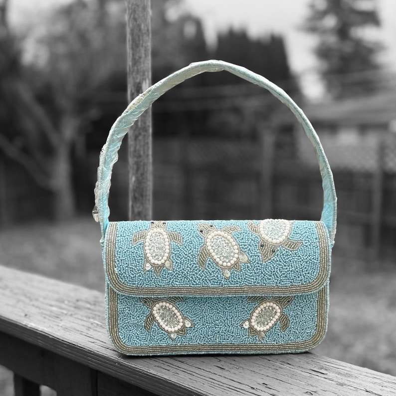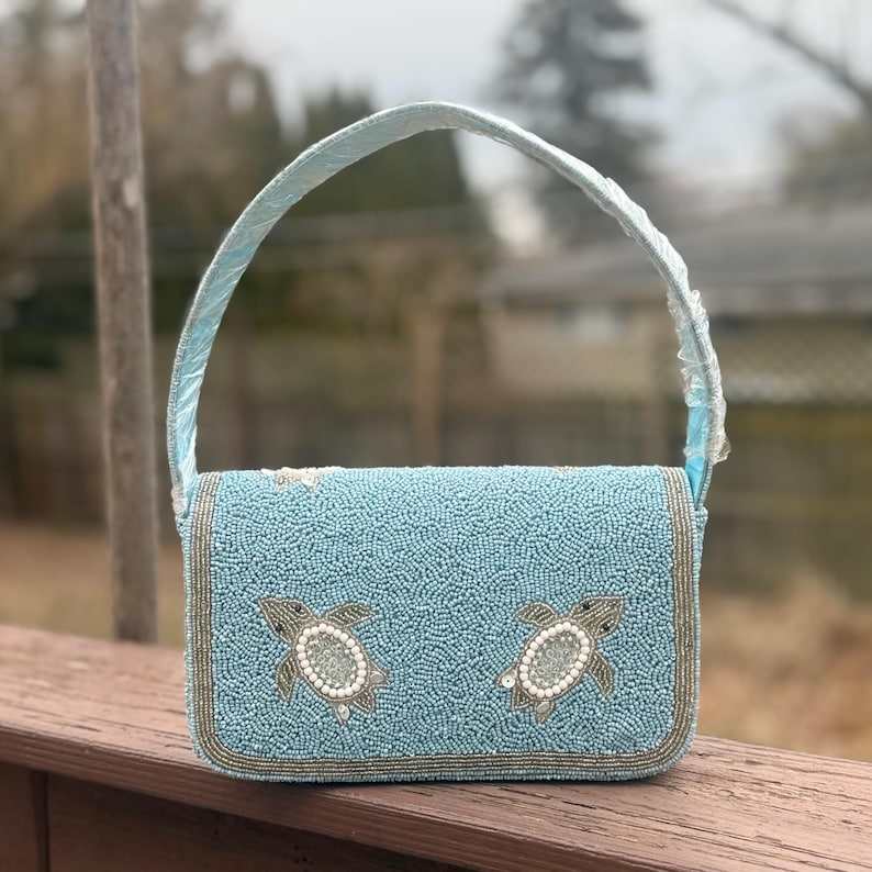 กระเป๋าถือทรงบาแกตต์ทำมือสไตล์อินเดียจาก MS Handicraft ประดับด้วยลูกปัดแก้วสีสันตามสั่ง พร้อมหูหิ้วและรูปทรงที่ปรับแต่งได้