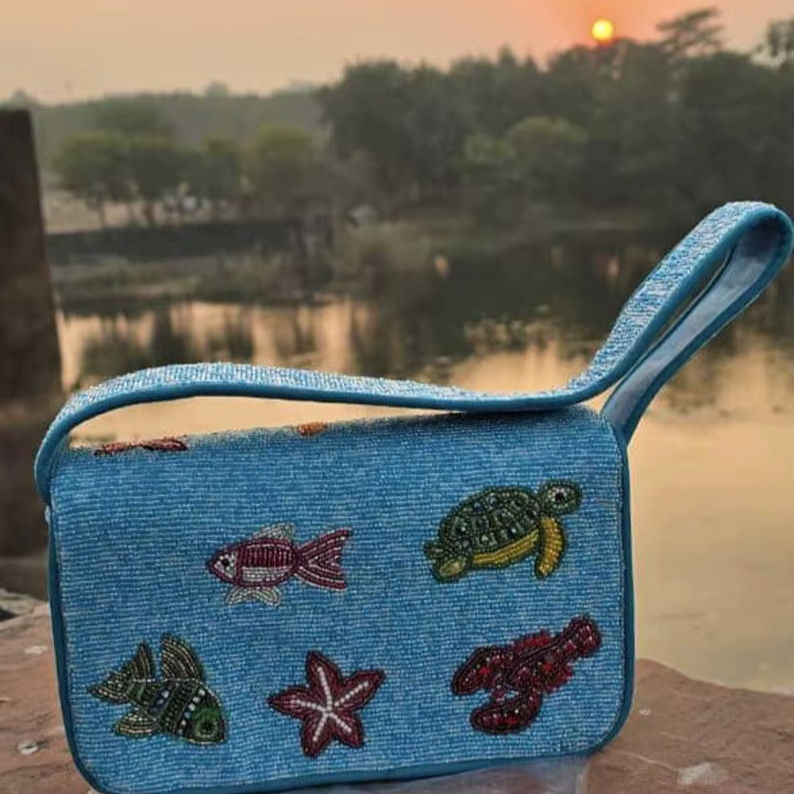 MS กระเป๋าลูกปัดแก้วหลากสีงานหัตถกรรมกระเป๋าถือแบบลำลองทำด้วยมือปรับแต่งสีเองได้