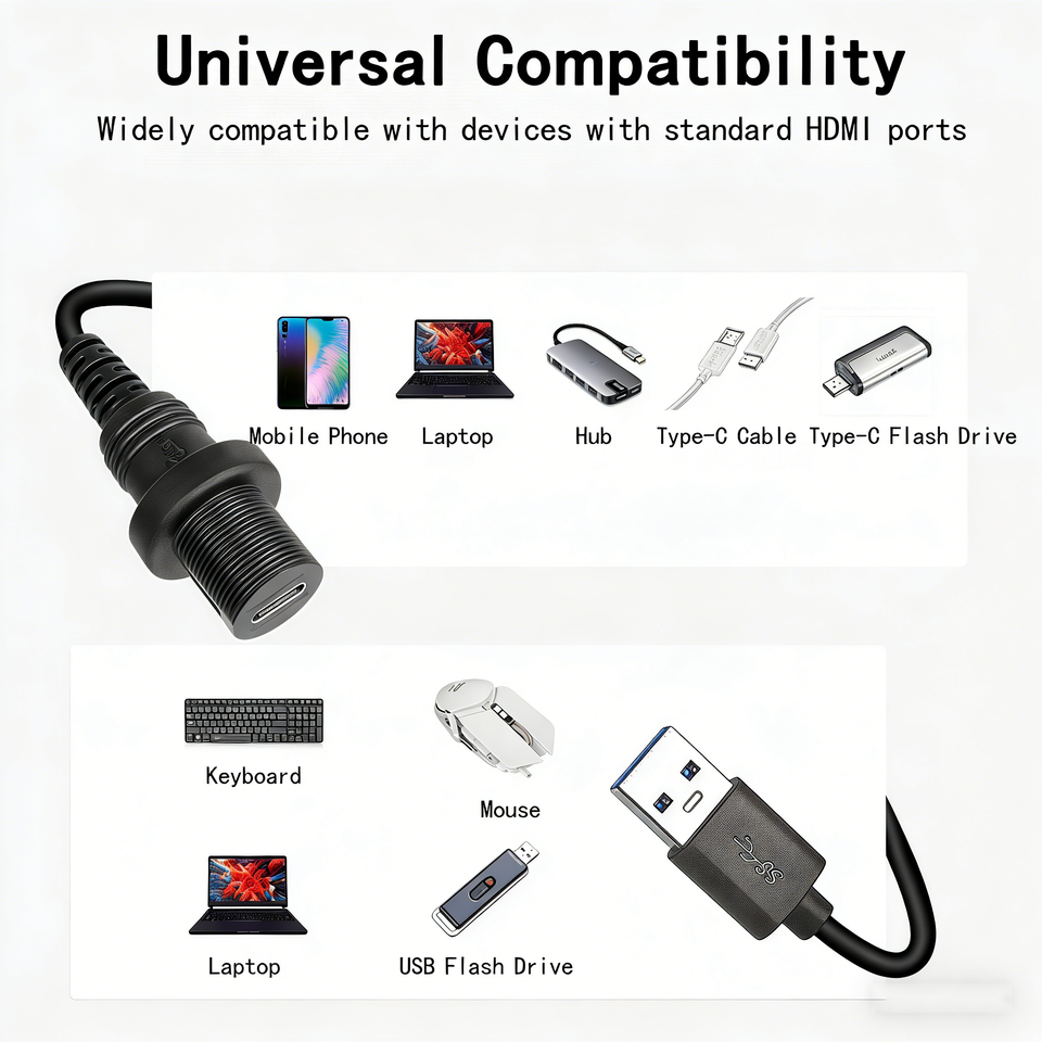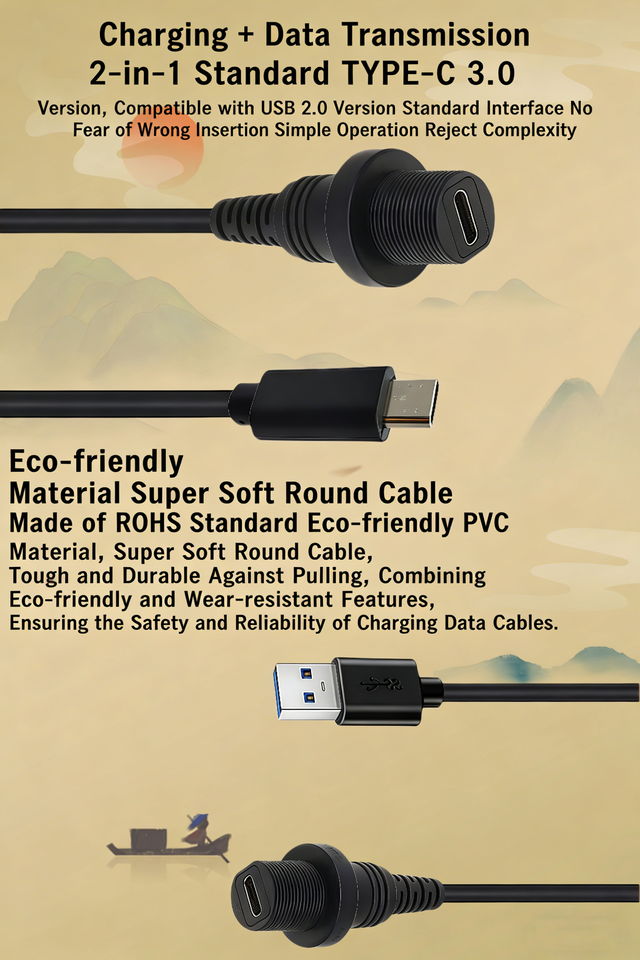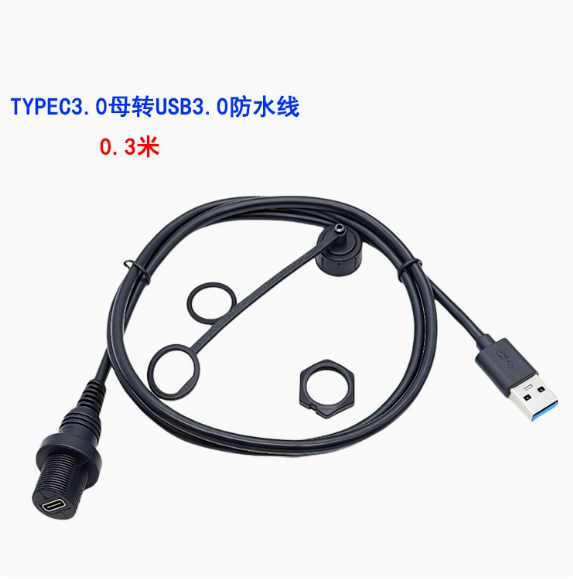 สายเคเบิลกันน้ำแบบฝังในแผงหน้าปัดรถยนต์ เรือยอชท์ มอเตอร์ไซค์ ชนิด MS USB A เป็น Type-C 3.0 ตัวเมีย