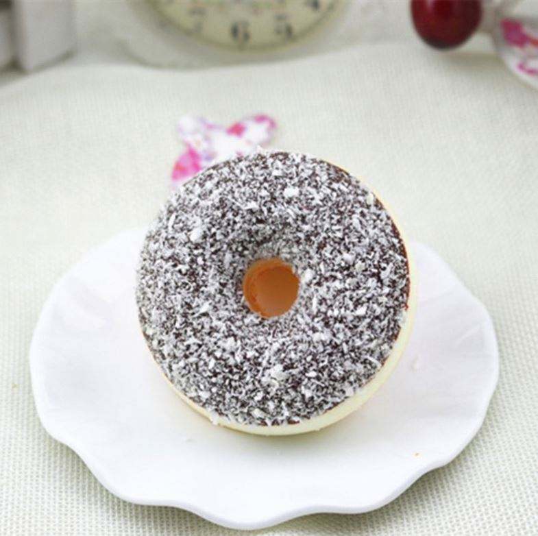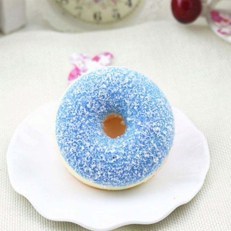 ของเล่นบีบสควิชชี่รูปโดนัท กลิ่นหอม ทำจากพลาสติก PU ยืดหยุ่น คืนรูปช้า ได้รับการรับรองมาตรฐาน MSDS EN71 พร้อมพวงกุญแจรูปโดนัทสำหรับเด็ก
