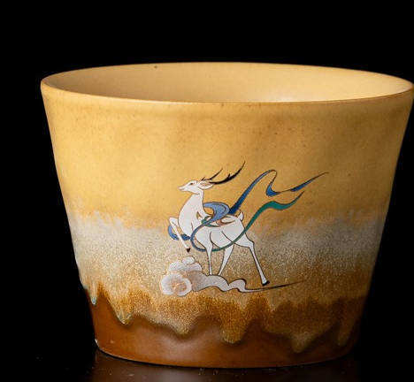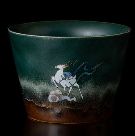 ชุดถ้วยกาแฟและจานรองลายกวางเก้าสี ตุนหวง แดง พระราชวังต้องห้าม สำหรับห้องน้ำชา