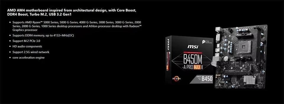 MSI B450M-A PRO MAX II M-ATA PC Mainboard Supports AM4 Series CPU Processors 64gb Motherboard