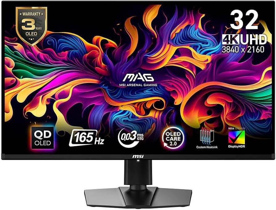 จอคอมพิวเตอร์ MSI MAG 321UP QD-OLED ขนาด 32 นิ้ว QD-OLED ความละเอียด 3840 x 2160 (UHD) 165Hz ปรับเอียง ปรับระดับความสูงได้ พร้อมลำโพง 0.03ms สีดำ