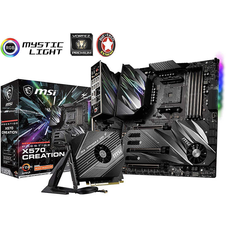 เมนบอร์ด MSI PRESTIGE X570 CREATION E-ATX สำหรับเล่นเกม รองรับซ็อกเก็ต AMD AM4 ชิปเซ็ต X570 รองรับซีพียู Ryzen 5800X 5700G 5900X