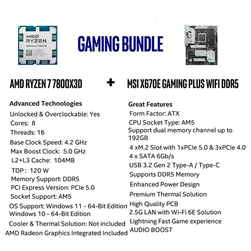 เมนบอร์ด X670E สำหรับเล่นเกมและเล่นเกมระบบ WiFi พร้อมด้วยหน่วยประมวลผล AM5ซีพียู AMD Ryzen 7 7800X3D รวมกับเมนบอร์ด CPU
