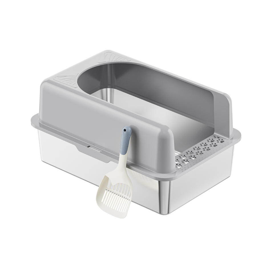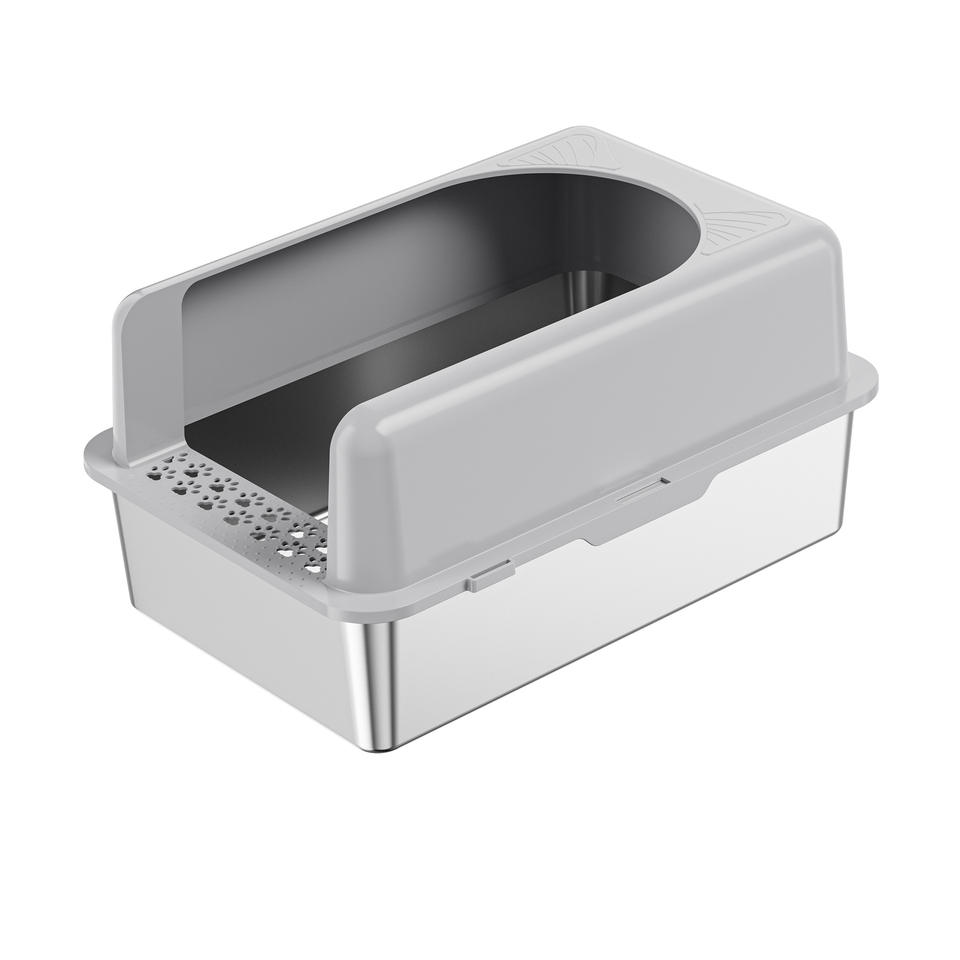 กระบะทรายแมวสแตนเลส MSP001 ขนาด 20 ลิตร แบบกึ่งปิด รูปทรงสี่เหลี่ยมผืนผ้า ทำความสะอาดง่าย สำหรับแมว สีเงิน