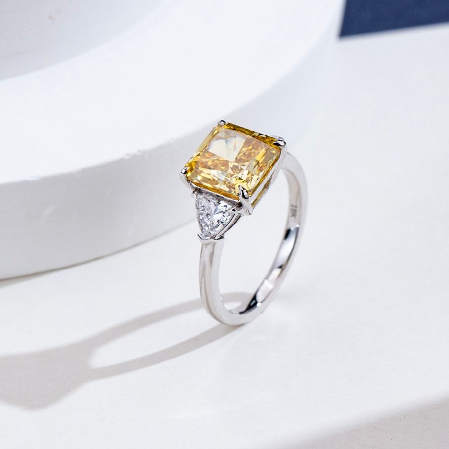 แหวนเพชรเพาะเลี้ยงในห้องปฏิบัติการทรงอัชเชอร์ สีเหลือง น้ำหนัก 3.95 กะรัต ทองคำขาว 18K แหวนหรูหรา รุ่น MSR-1929