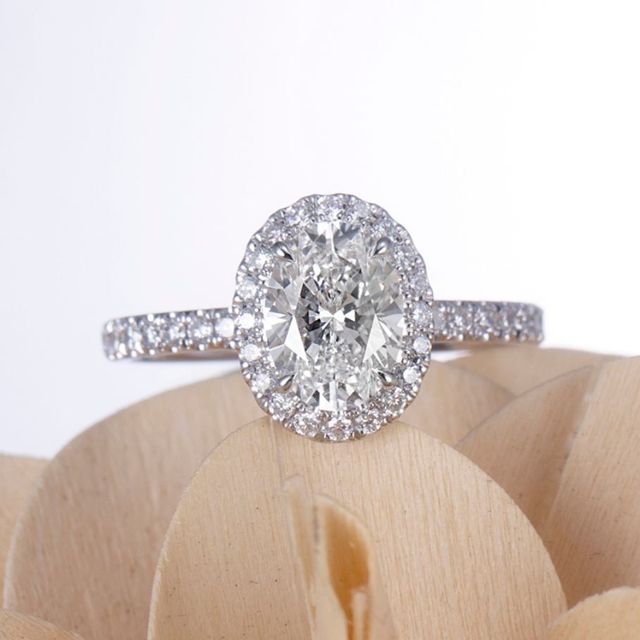 ชื่อสินค้า:แหวนเพชรรูปทรงวงรีจากเพชรสังเคราะห์ แหวนดีไซน์พิเศษแบบ Halo