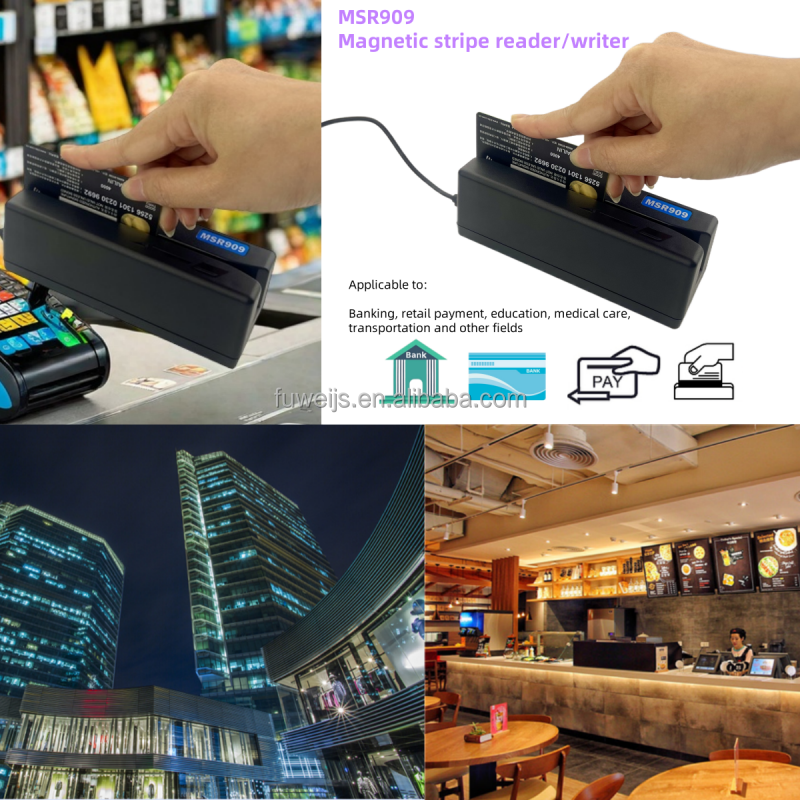 เครื่องเข้ารหัสและอ่านบัตรแม่เหล็ก 3 แทร็ก รุ่น MSR909 เชื่อมต่อผ่าน USB สำหรับบัตรเครดิตและบัตรประจำตัว รองรับ HiCo/LoCo มาตรฐาน ISO 7811-6