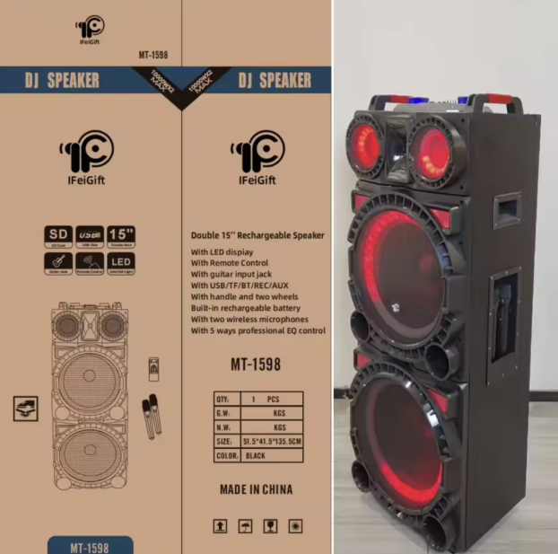 ลำโพง MT-1598 ลำโพงคู่ขนาด 15 นิ้ว ตู้ไม้ ลำโพงแอคทีฟ ซับวูฟเฟอร์ระดับมืออาชีพขนาด 15 นิ้ว ไมโครโฟนไร้สาย ลำโพงคู่ขนาด 12 นิ้ว รุ่น MT-1263