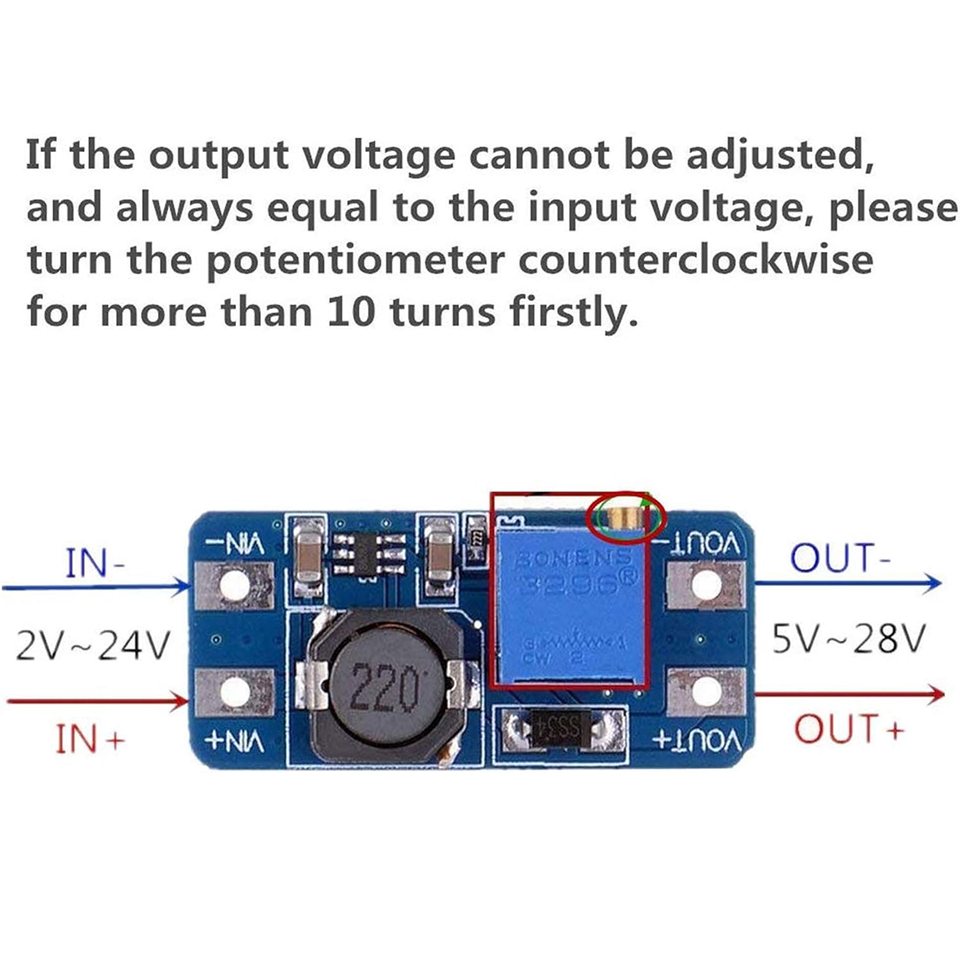 MT3608 2A บอร์ดบูสเตอร์ 2/24V ถึง 5/9/12/28V แรงดันไฟฟ้ากว้างอินพุต DC-DC โมดูลปรับพลังงาน