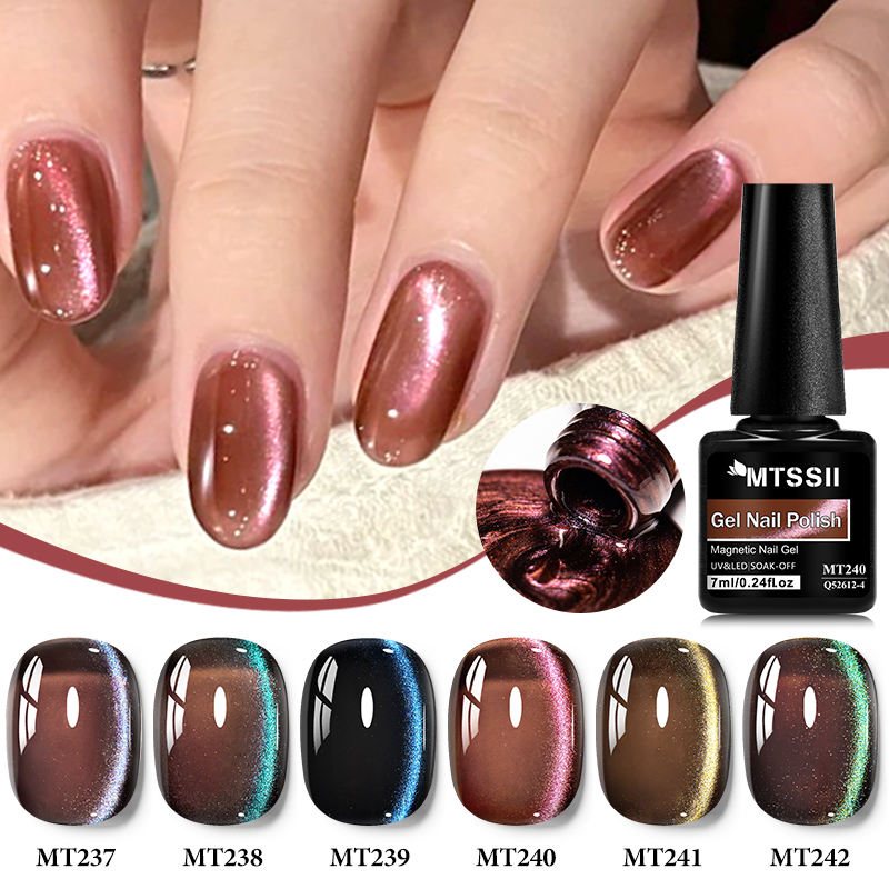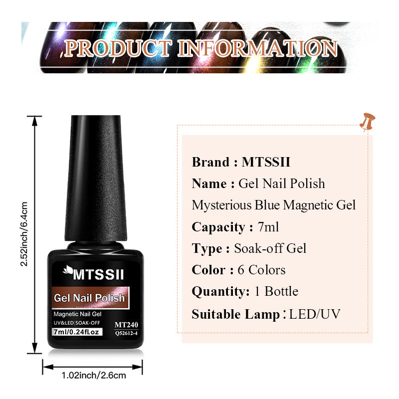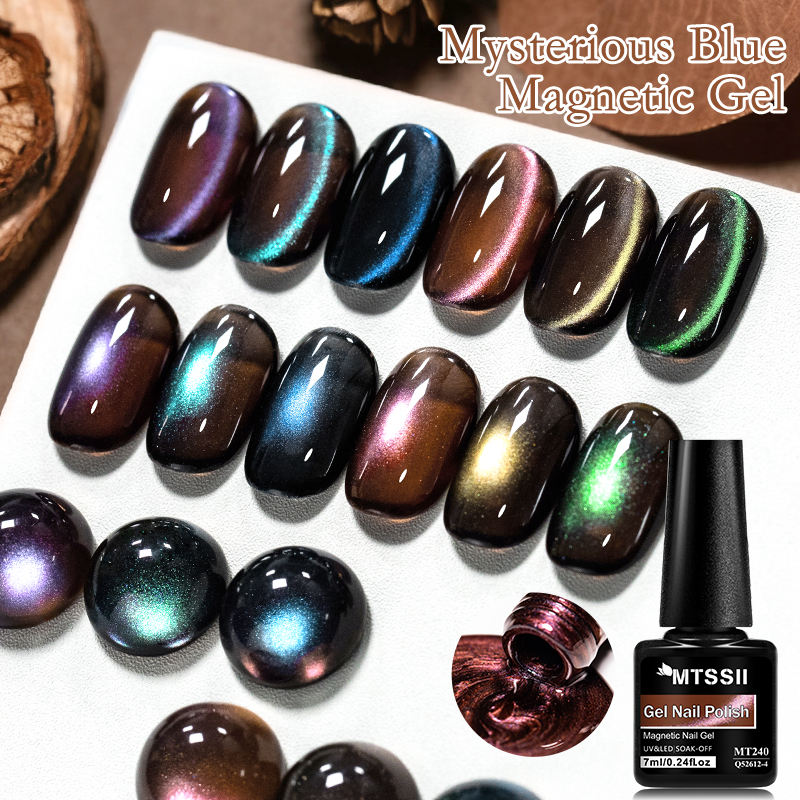 เจลทาเล็บ MTSSII 7 มล. แบบแช่ล้างออกได้ ใช้กับหลอดไฟยูวีและแอลอีดี สีน้ำเงินฤดูใบไม้ร่วง เจลแม่เหล็กสีน้ำเงินลึกลับ เจลทาเล็บลายตาแมว