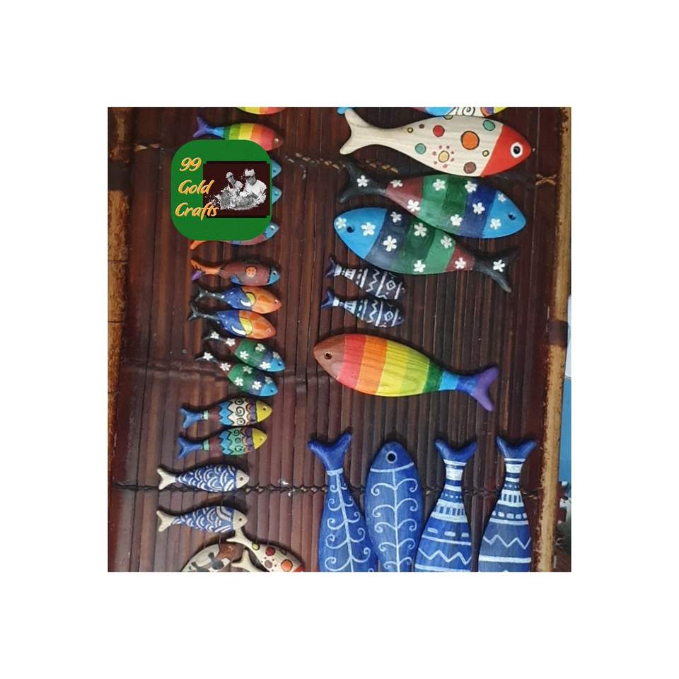 การตกแต่งศิลปะปลาหลากสีที่ทำจากไม้สำหรับตกแต่งธีมชายหาดในบ้านจอแสดงผลติดผนังภายในและงานฝีมือตกแต่งด้วยมือที่เป็นมิตรต่อสิ่งแวดล้อม