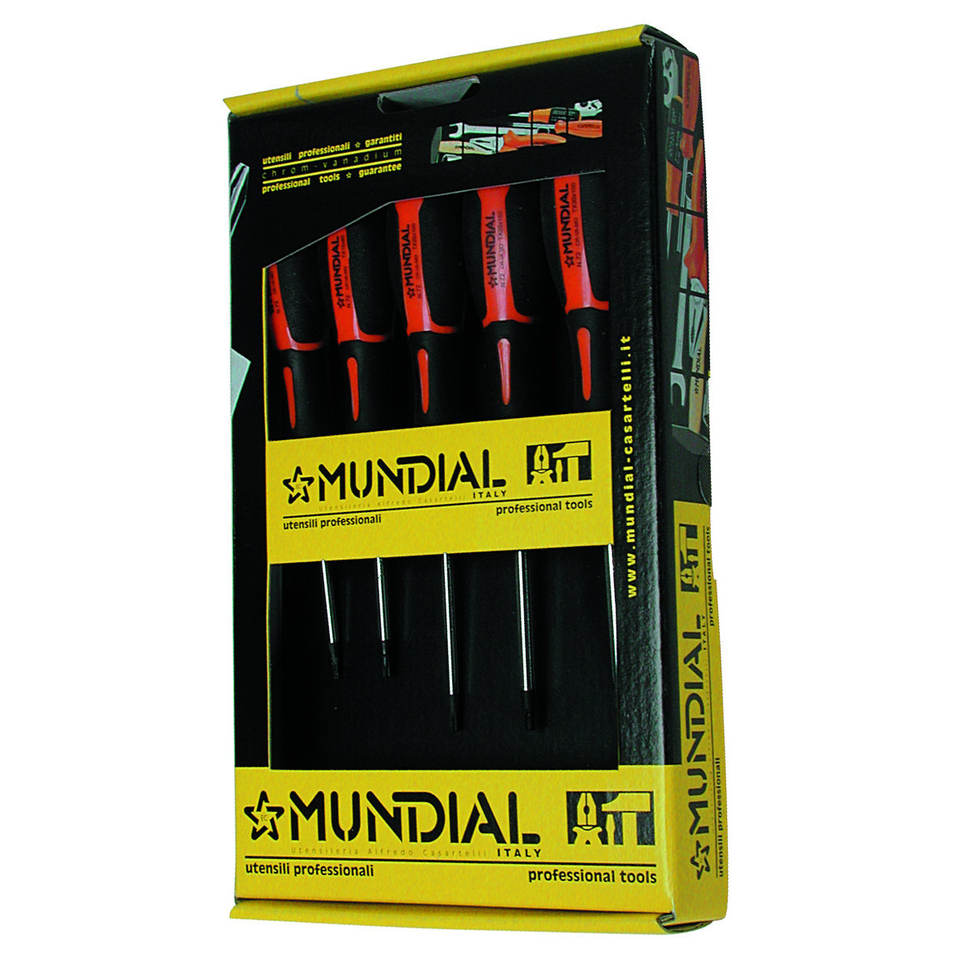 MUNDIAL ชุดไขควงขนาดเล็กเกรดมืออาชีพ5ชิ้นหัวน็อตเหล็กอัลลอยสำหรับซ่อม DIY ปรับแต่งพลังงานได้ตามต้องการ