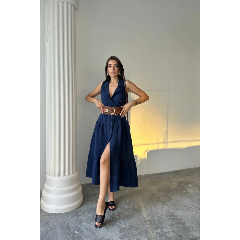 เสื้อเชิ้ตมัสลินแขนกุดคอปกสีกรมท่าเสื้อผู้หญิงไซส์ S