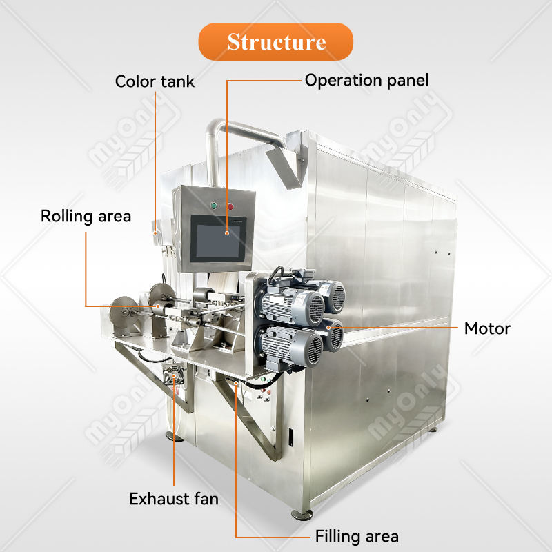 เครื่องทำบิสกิตม้วนไข่อัตโนมัติเต็มรูปแบบ MY Industrial ขนาด 40 กก./ชม. พร้อมจำหน่าย