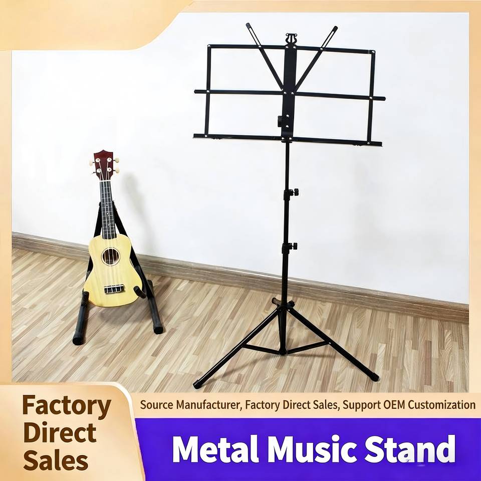 ขาตั้งโน้ตเพลงแบบพกพา พับได้ ปรับระดับได้ สีดำ ทำจากโลหะ ขนาดเล็ก สำหรับเครื่องดนตรีประเภทเครื่องสาย