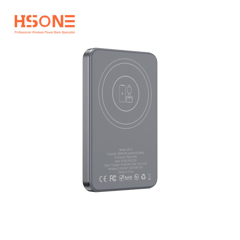 พาวเวอร์แบงค์ MY15L Ultra Slim Magnetic Mirror Tempered Glass พร้อมตัวเครื่องอะลูมิเนียมอัลลอยด์ ความจุ 5000mAh รองรับการชาร์จไร้สาย 15W และหน้าจอ TFT ขนาดใหญ่