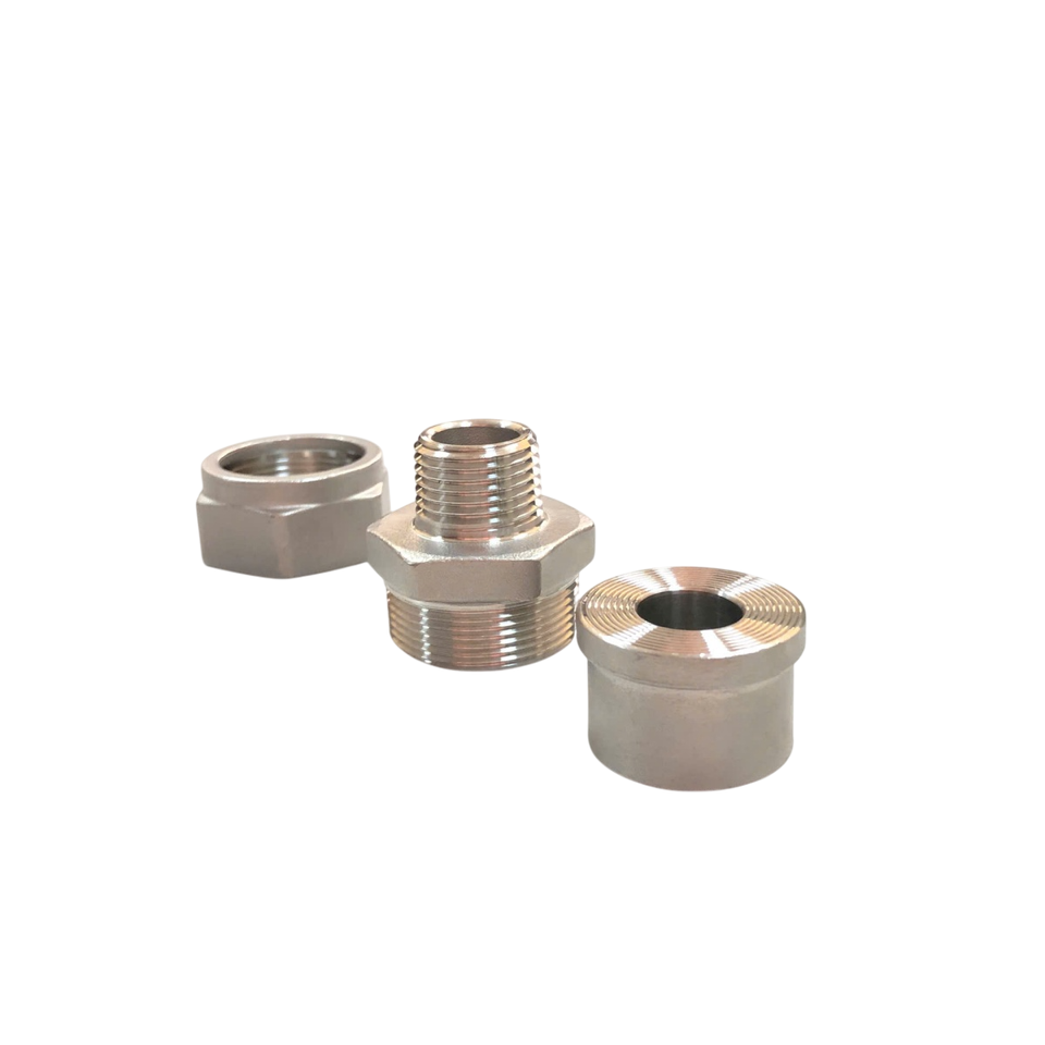 ข้อต่อหกเหลี่ยมสแตนเลส 304 ขนาด 3/4 นิ้ว ยี่ห้อ MYUNY พร้อมโลโก้สั่งทำพิเศษ ผิวเรียบ สำหรับงานอุตสาหกรรม ปรับความหนาได้ตามต้องการ