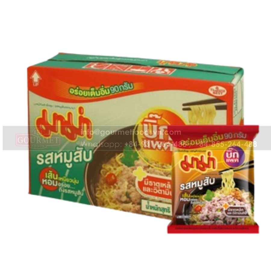 ชื่อผลิตภัณฑ์:มาม่าบะหมี่กึ่งสำเร็จรูปหมูสับรสเลิศ90กรัม X 24ถุง x 6กล่อง