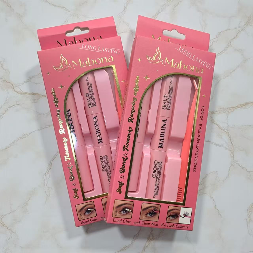 ชุดต่อขนตาปลอมมาโบนา บอนด์แอนด์ซีลสีชมพู กันน้ำ สำหรับต่อขนตาด้วยตัวเอง