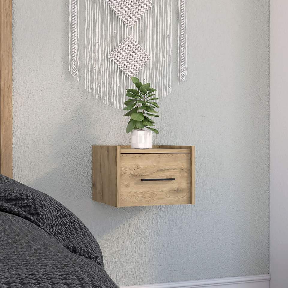 โต๊ะข้างเตียงแบบแขวนผนัง/โต๊ะข้างเตียงเดี่ยว รุ่นมาคาเดเมีย บีดีรูม โบอา พร้อมลิ้นชักเดี่ยวและมือจับ