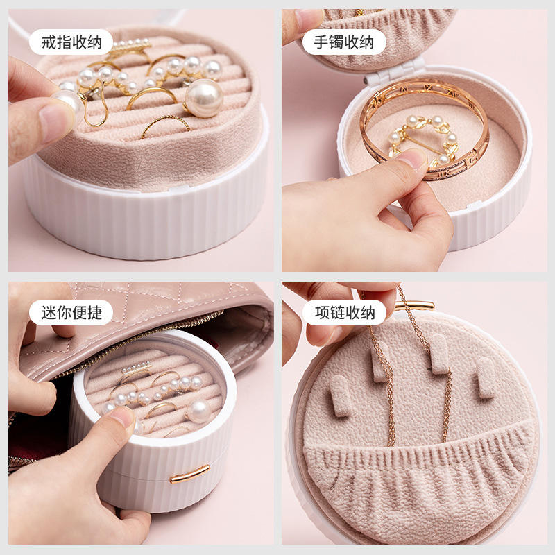 กล่องใส่เครื่องประดับมาการอง แหวน สร้อยคอ ต่างหู วัสดุ ABS สไตล์เกาหลี กล่องจัดระเบียบสำหรับเดินทาง สีพื้น บุผ้ากำมะหยี่