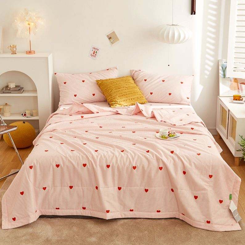 ผ้านวมฤดูร้อนเนื้อนุ่ม ซักเครื่องได้ จัดเก็บง่าย ผ้าฝ้ายเย็นสบาย เหมาะสำหรับหอพักและการตกแต่งบ้าน