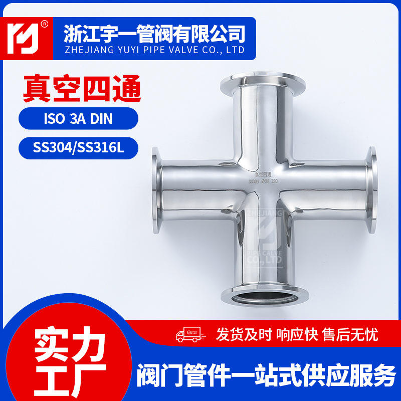ข้อต่อสแตนเลสแบบกลึง KF สี่ทาง 16/50 ข้อต่อสุญญากาศแบบสี่ทางสำหรับงานสุขภัณฑ์ อุปกรณ์ข้อต่อและตัวเชื่อมต่อท่อ