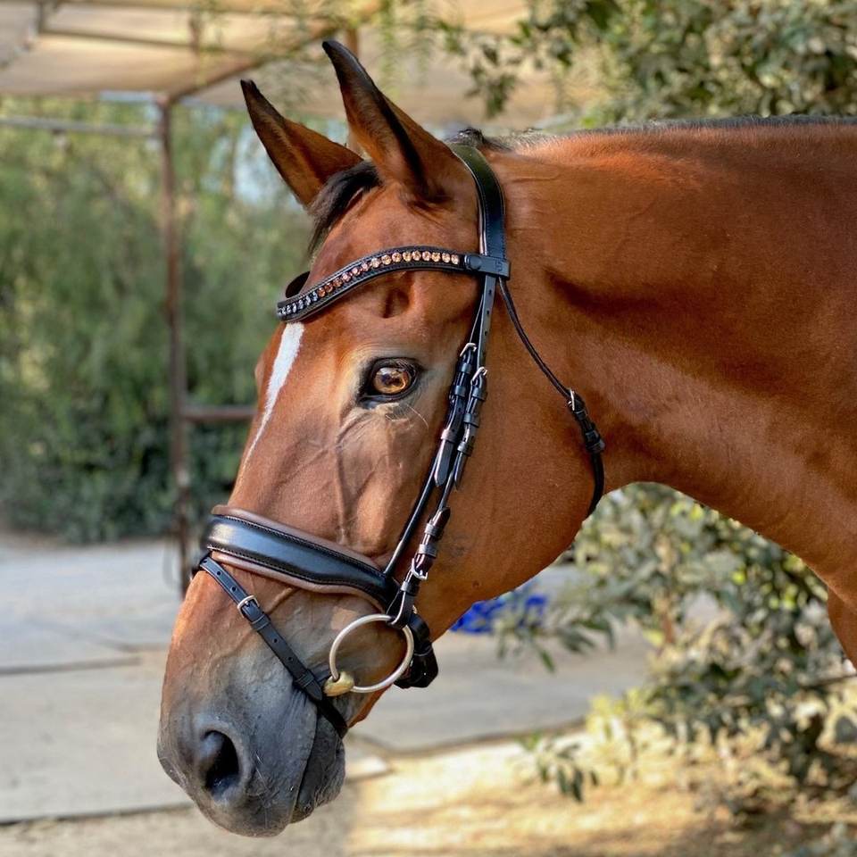 บังเหียนม้าหนังสีดำ/สีมอคค่า ยี่ห้อ Macho Black Snaffle อุปกรณ์ขี่ม้า บังเหียนสำหรับแข่งม้า พร้อมสายบังเหียน น้ำหนัก