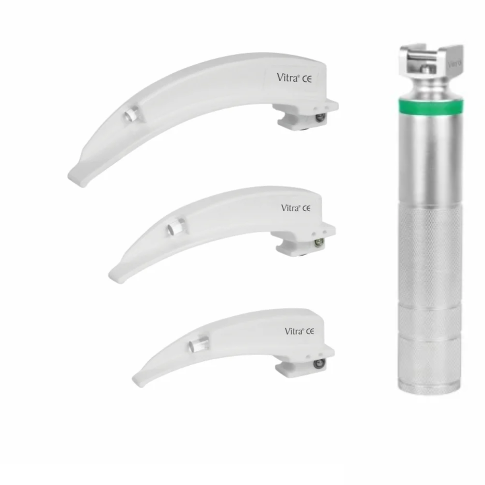 Macintosh F.O. Disposable Laryngoscope Blades (Non-Sterile)| Fiber optic Single Use Laryngoscope set |4 Blades set with Handle