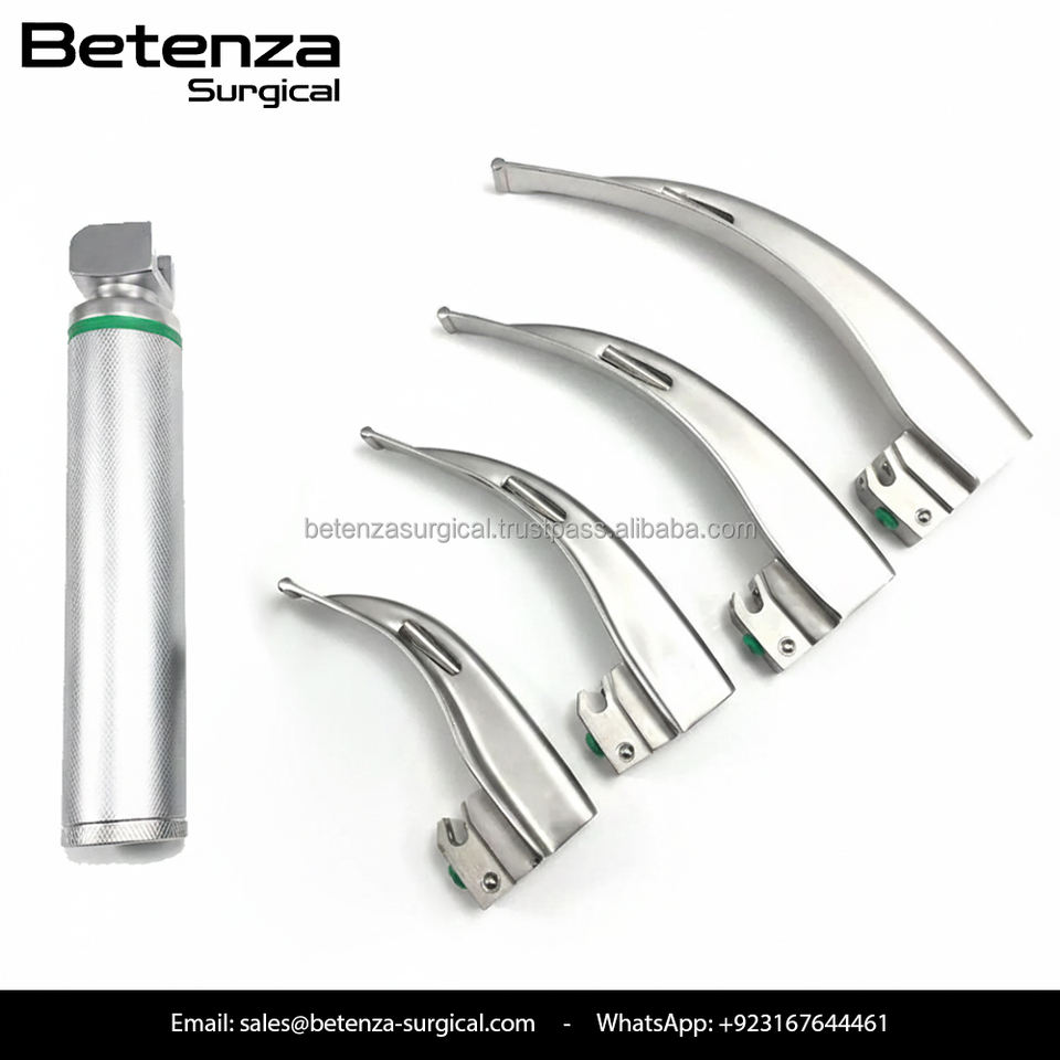 ชุดเครื่องมือส่องกล่องเสียงแบบแมนนวล Macintosh พร้อมใบมีดไฟเบอร์ออปติก 5 ใบ ทำจากสแตนเลส