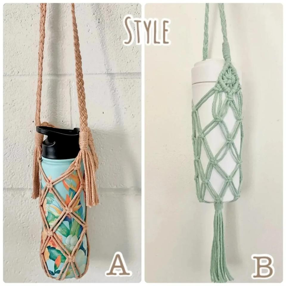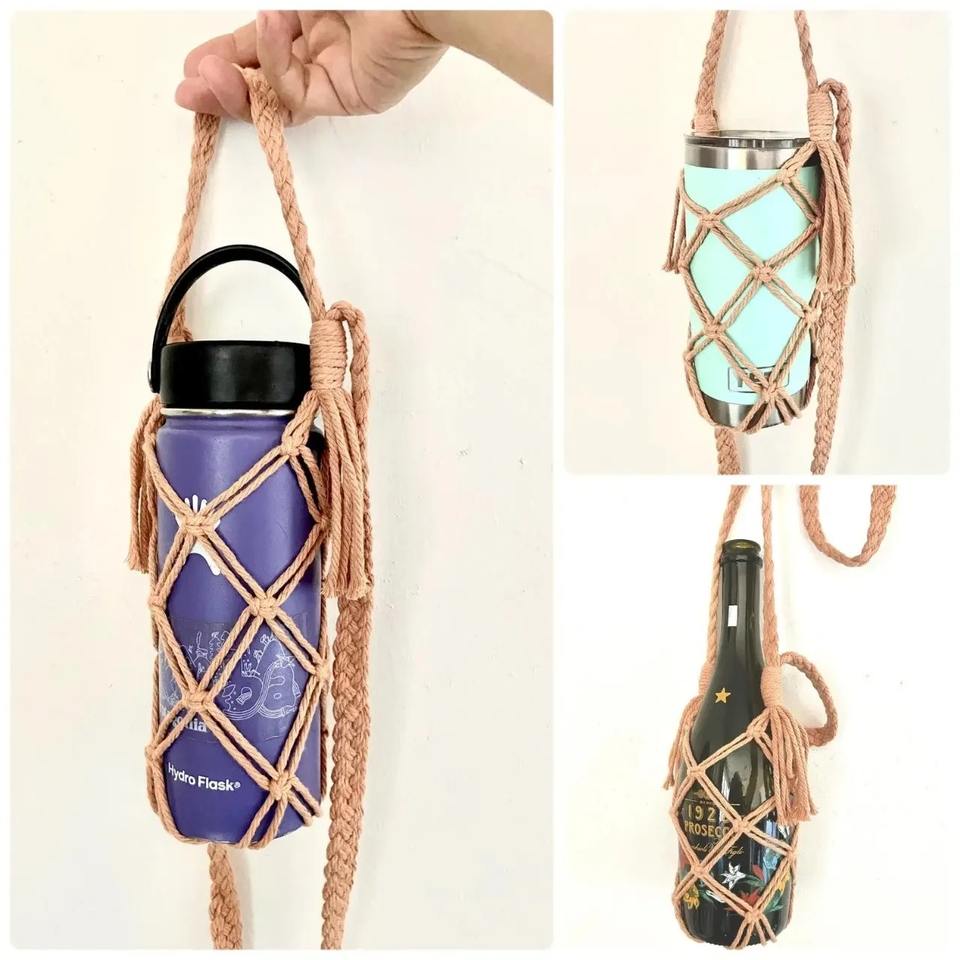 ขวด macrame ถือของตกแต่งทำด้วยมือหรูหราโดดเด่นสำหรับคอนโซลและสไตล์โบฮีเมียนสุดชิคและทันสมัย