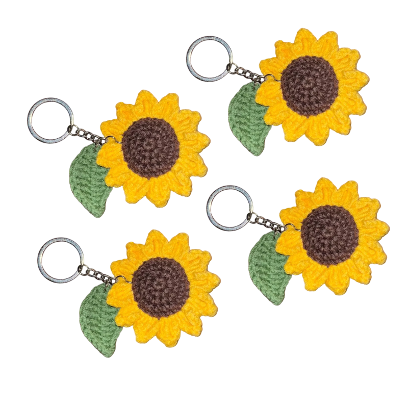 พวงกุญแจ Macrame พวงกุญแจกระเป๋ารถผู้หญิงอุปกรณ์เสริมเสน่ห์พวงกุญแจของขวัญโชคดีพวงกุญแจถักด้วยมือดอกไม้ขนสัตว์ดอกทานตะวัน